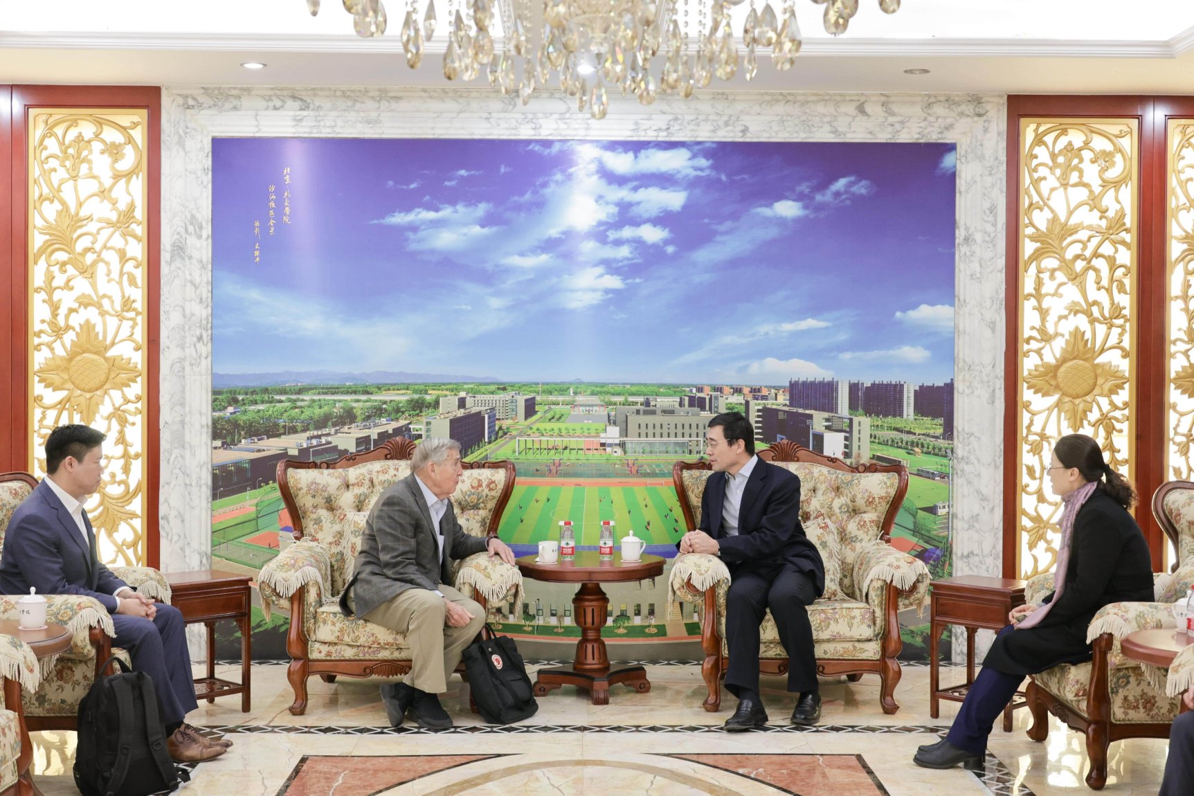 演讲开始前,高飞校长会见艾利森教授,双方就美国政治现状与制度特点、国际局势、全球治理等多个国际和国内热点问题交换了看法,外办主任马新宇、亚洲研究所苗吉副研究员等陪同。