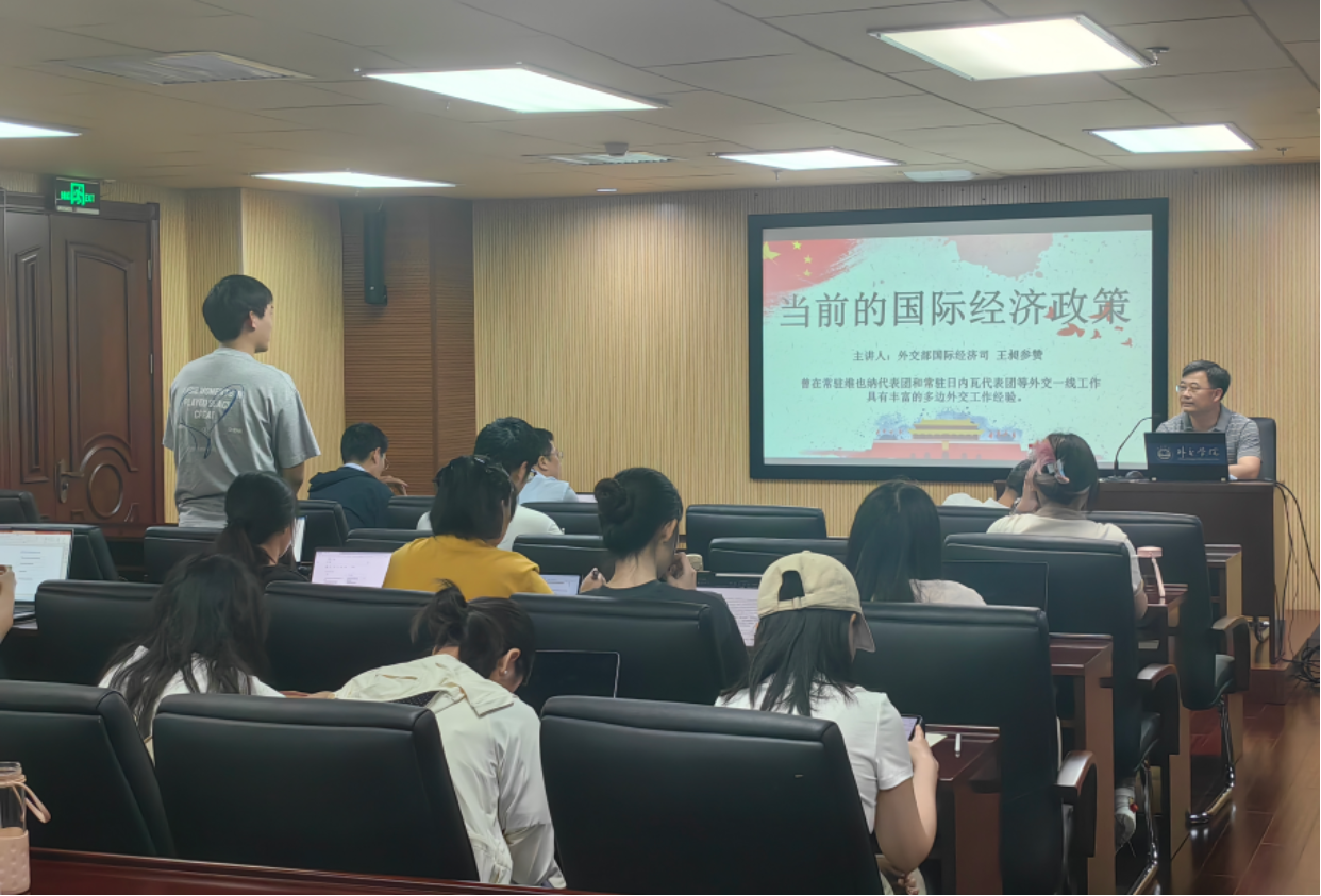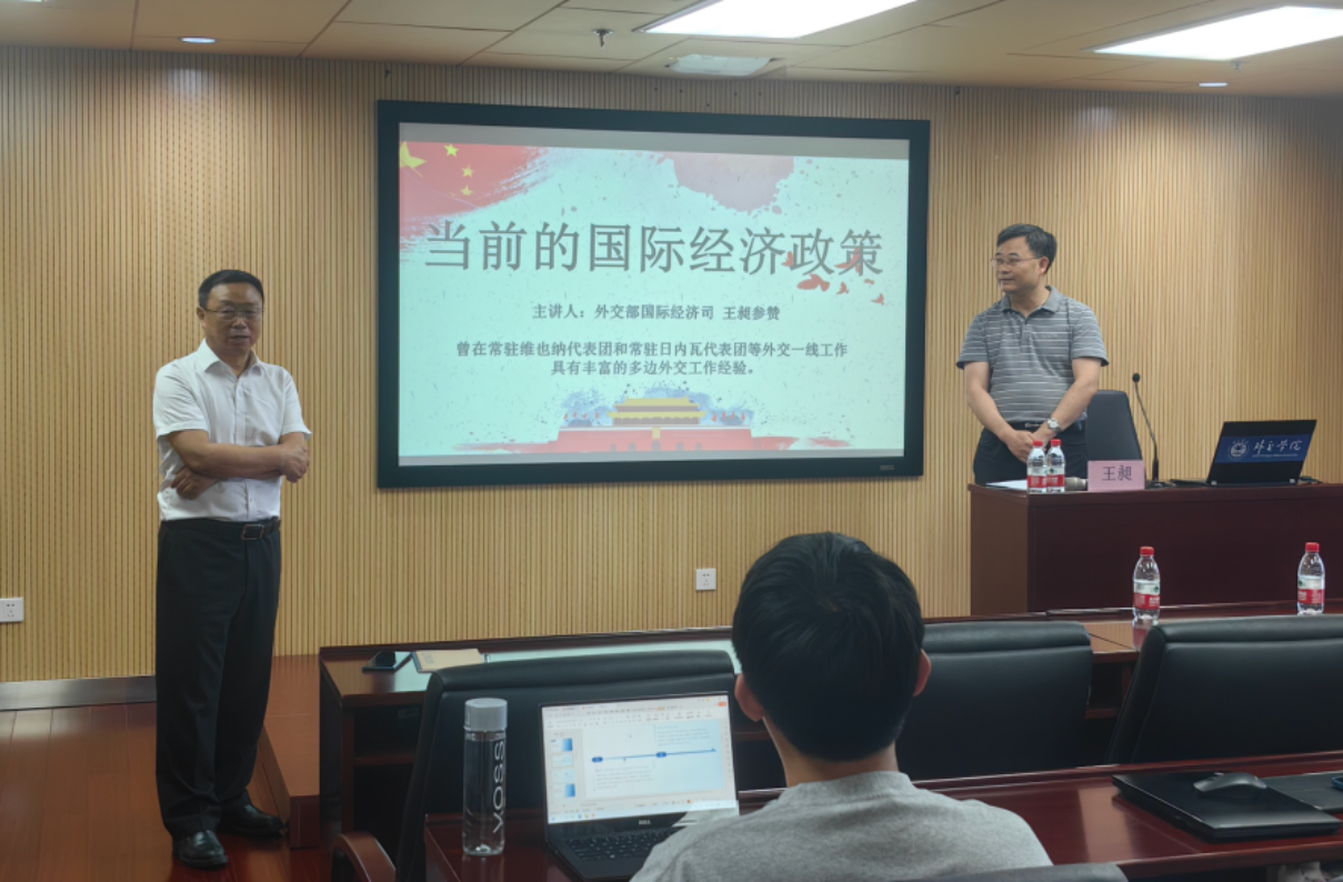为帮助同学们深入理解当前国际经济格局变化,提升对全球经济治理与多边外交实践的认知,2025年6月20日下午,国际经济学院沙河校区行政楼4012会议室,举办题为“当前的国际经济政策”的专题讲座。外交部国际经济司王昶参赞主讲,国际经济学院院长欧明刚教授主持。