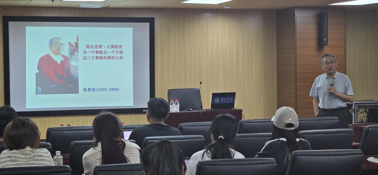 2025年5月29日晚,应国际经济学院胡永刚老师邀请,厦门大学林亚南教授莅临我校沙河校区,在行政楼4012作题为《陈景润的传奇人生与精神魅力》的讲座,讲座由国际经济学院副院长张文佳教授主持。