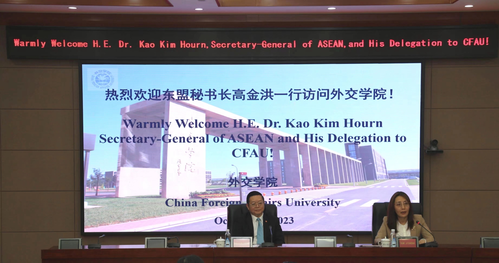 2023年10月17日,高金洪秘书长率团来访我院,就“中国-东盟伙伴关系”发表演讲,并与师生进行了交流,活动由孙吉胜副院长主持。