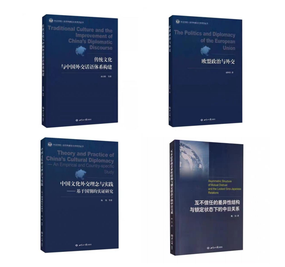 截至目前,孙吉胜教授的《传统文化与中国外交话语体系构建》、赵怀普教授的《欧盟政治与外交》、杨悦副教授的《中国文化外交理念与实践——基于国别的实证研究》、陈实老师的《互不信任的差异性结构与锁定状态下的中日关系》等四部著作已出版。